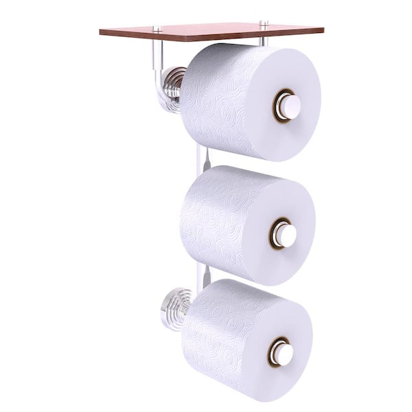Waverly Place Collection Wall Mounted Toilet Paper Holder in Polished Chrome with Wood Shelf