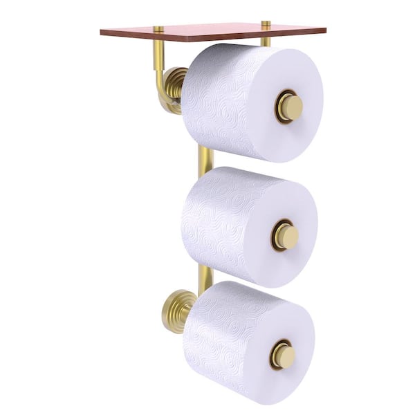 Waverly Place Collection Wall Mounted Toilet Paper Holder in Satin Brass with Wood Shelf