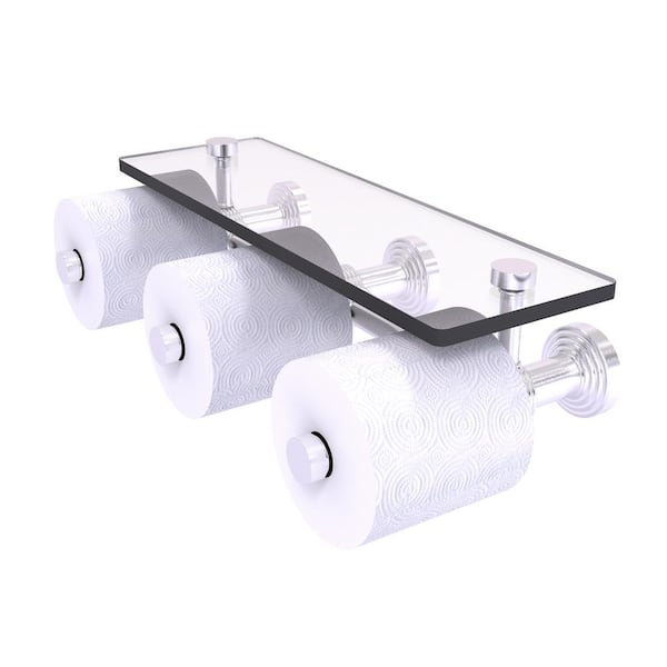 Waverly Place Collection Wall Mounted Toilet Paper Holder in Satin Chrome with Glass Shelf