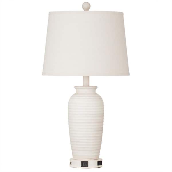 Allisan 24.3 in. H White Ceremic Table Lamp Set with Type-C, USB Port, and Built-in Outlet