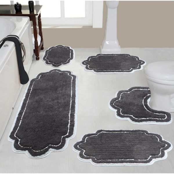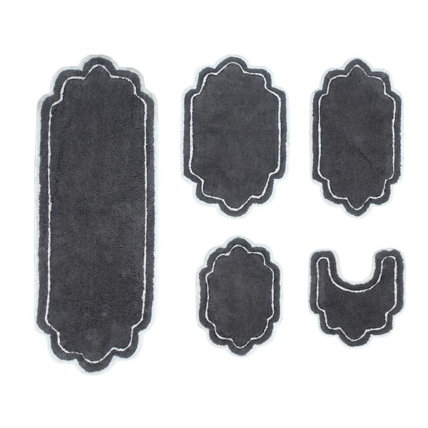 Allure Collection 100% Cotton Tufted Bath Rug, 5-Pcs Set with Contour, Dark Gray