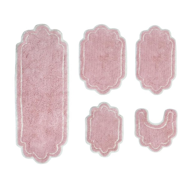 Allure Collection 100% Cotton Tufted Bath Rug, 5-Pcs Set with Contour, Pink
