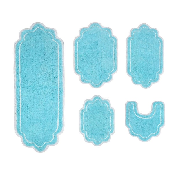 Allure Collection 100% Cotton Tufted Bath Rug, 5-Pcs Set with Contour, Turquoise