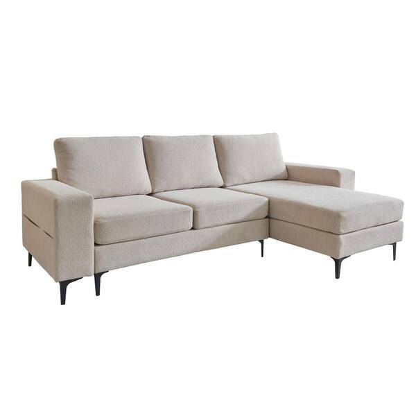 COCO 97 in. Square Arm Modern 2-Piece Cloud Wool Velvet L-Shape Modular Sectional Sofa in Beige with Right Chaise