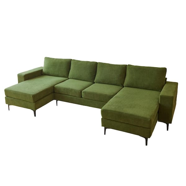 KIKI 126 in. Square Arm Modern 4-Seat Cloud Velvet U-Shape Modular Sectional Sofa in Green with Chaise