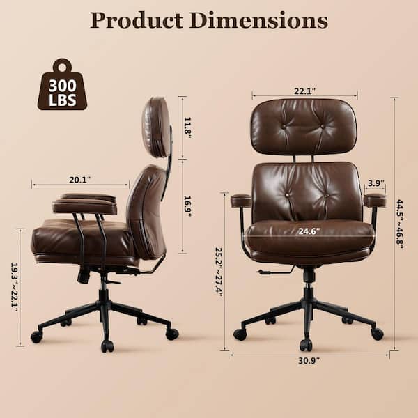 Kro PU Fabric Swivel Ergonomic Office Task Chair in Dark Brown with Recliner High Back Lumbar Support Adjustable Arms