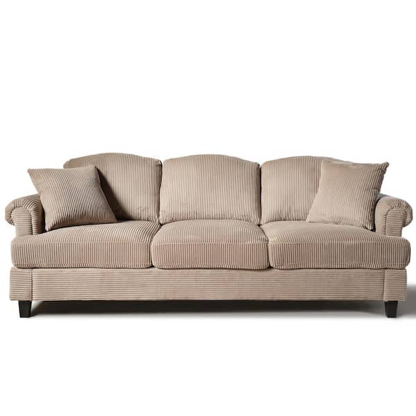 TATA 91 in. Rolled Arm Corduroy 3-Seater Couch Modern Rectangle Upholstered Sofa in Camel