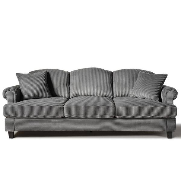 TATA 91 in. Rolled Arm Corduroy 3-Seater Couch Modern Rectangle Upholstered Sofa in Gray