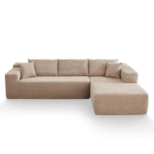 VIVI 104 in. Wide Arm 2-Piece Corduroy Fabric L-Shape Modular Sectional Sofa in Camel with Right Chaise