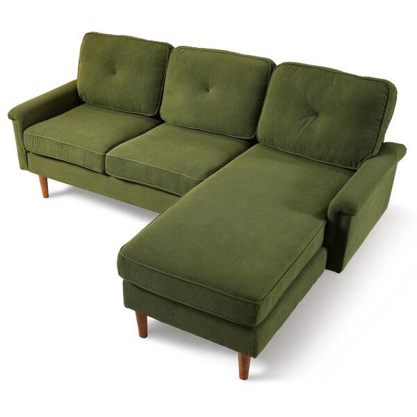 Zephyr 87 in. Straight Arm 2-Piece Corduroy Modern L-shape Modular Sectional Sofa in Green with Right Chaise