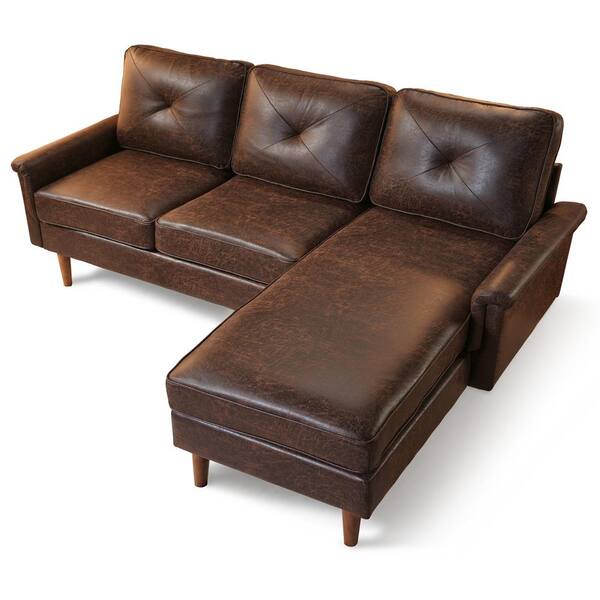 Zephyr 87 in. Straight Arm 2-Piece Suede Modern L-shape Modular Sectional Sofa in Dark Brown with Right Chaise