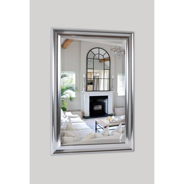 Large Rectangle Lightly Aged Silver Beveled Glass Contemporary Mirror (41.5 in. H x 26.5 in. W)