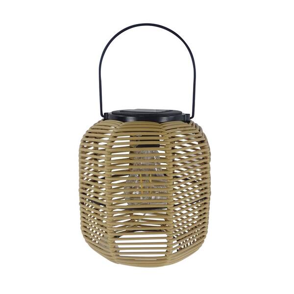 10 in.Yellow Solar Plastic Garden and Patio Outdoor Lantern with LED Light