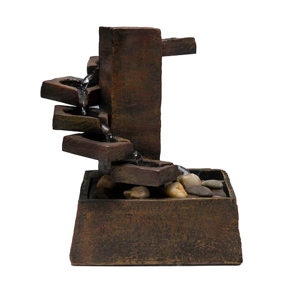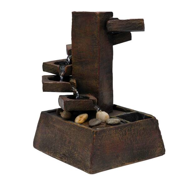 11 in. Tall Indoor/Outdoor Zen Tabletop Tiered Stone Water Fountain with Mini Plant Holder