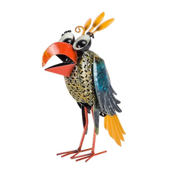 12 in. Tall Outdoor Metal Wide-Eyed Bird Standing Yard Statue Decoration, Multicolor