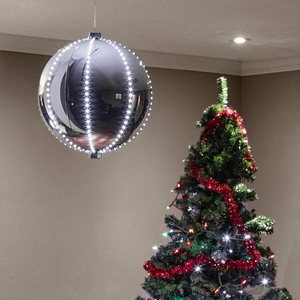 13 in. Tall Large Hanging Christmas Ball Ornament with LED Lights, Silver