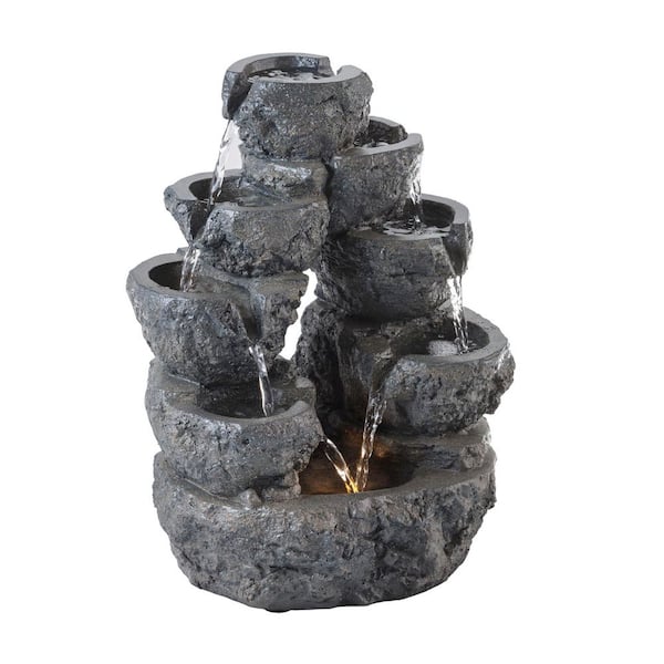 14 in. Tall Tabletop 5-Tier Cascading Waterfall Fountain with LED Lights