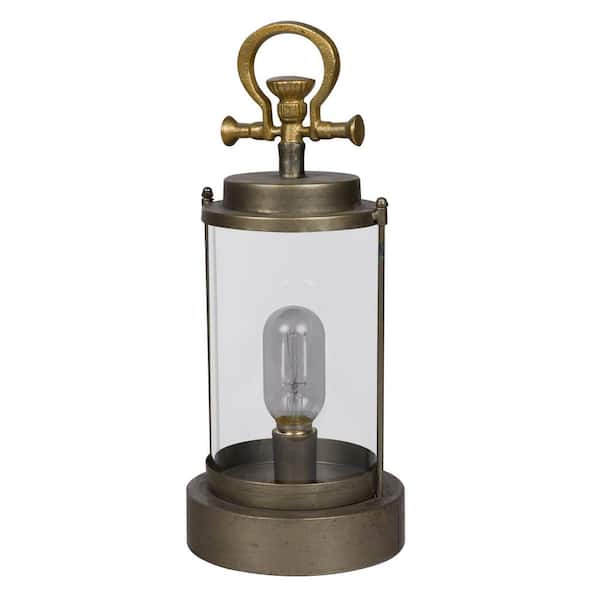 15 in. Vintage Metal and Glass Outdoor Lantern w/Warm Battery Operated LED, Gold