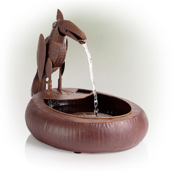 16 in. Tall Indoor/Outdoor Rustic Metal Toucan Water Fountain Yard Statue Decoration, Brown