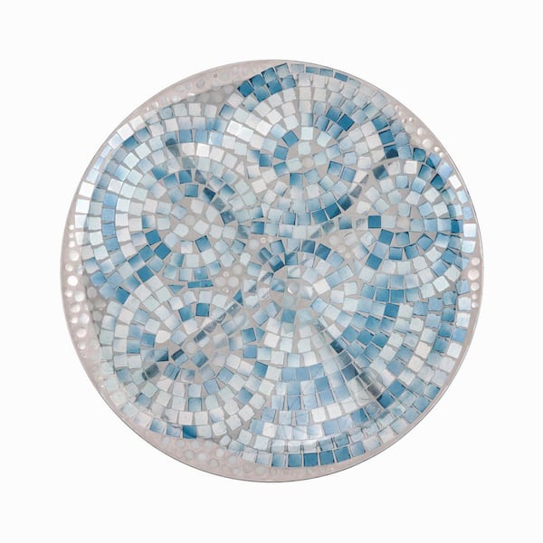 24 in. Tall Outdoor Mosaic Style Glass Birdbath Bowl with Metal Stand, Blue