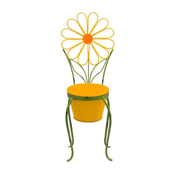 24 in. Tall Yellow Daisy Flower Planter with Stand Decoration Yard Statue