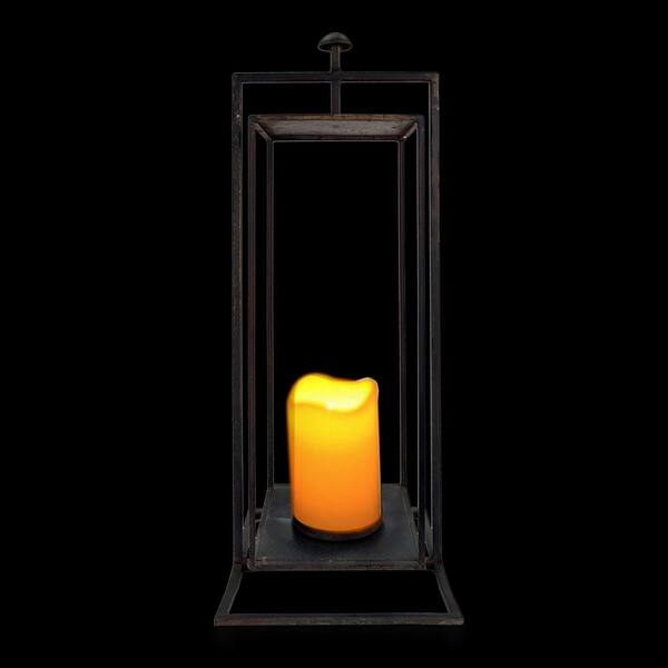 25 in. Gray Rectangular Outdoor Lantern with Glass Candle Compartment, Not Powered, No Bulbs Included