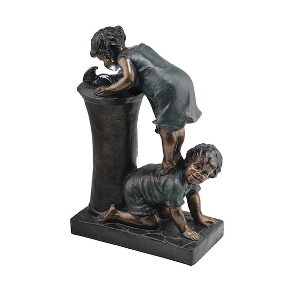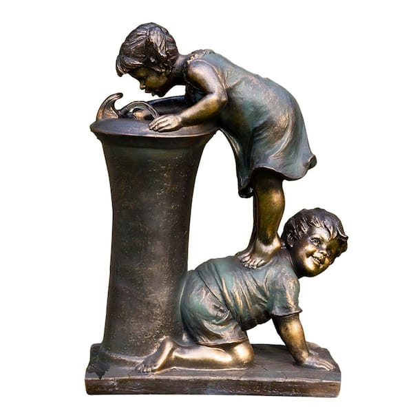 27 in. Tall Indoor/Outdoor Girl and Boy Drinking Water Fountain Yard Art Decoration