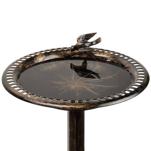 27 in. Tall Outdoor Antique Style Bronze Birdbath Bowl with Bird Figurine