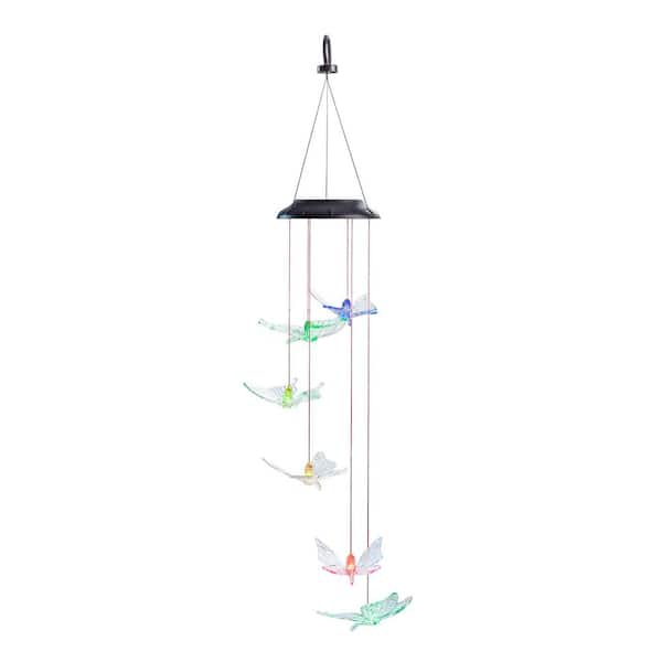 27 in. Tall Outdoor Solar Powered Wind Mobile with Color Changing LED Butterfly Lights