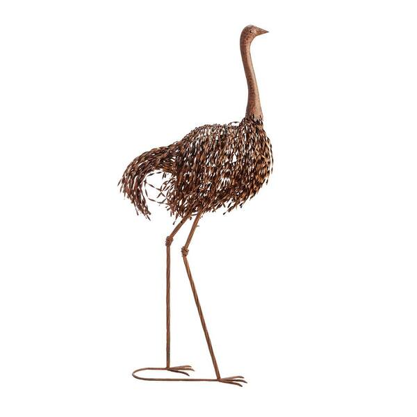 45 in. Tall Outdoor Metal Peaking Ostrich Standing Yard Statue Decoration