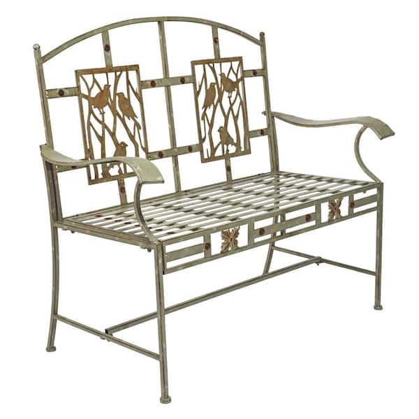 45 in. x 22 in. Outdoor 2-Person Metal Garden Bench with Bird Design
