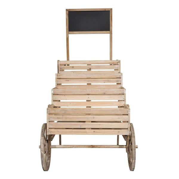 59 in. Tall Indoor/Outdoor Wooden Cart Plant and Display Stand with Chalkboard