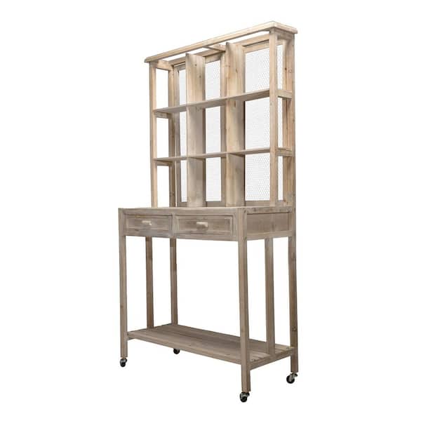 67 in. Tall Indoor/Outdoor Rustic Wooden Potting Hutch with Shelves and Drawers