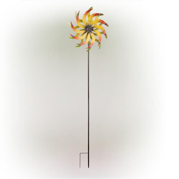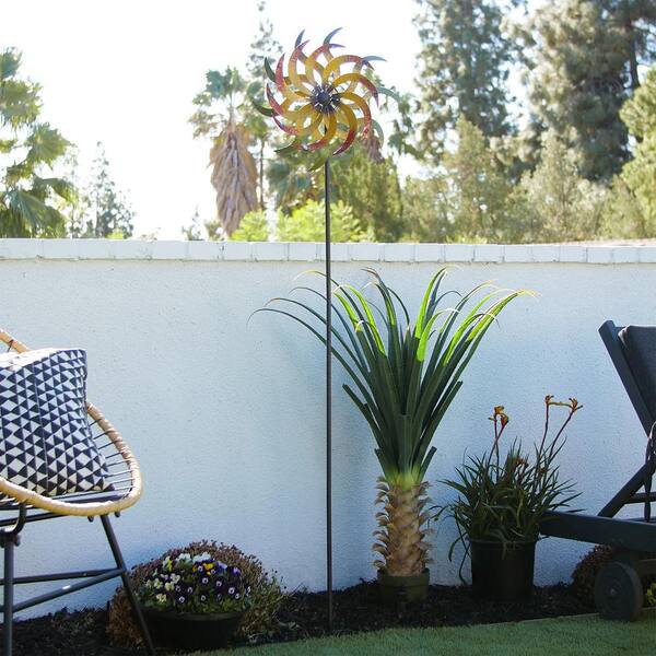 72 in. Tall Outdoor Metal Starburst Dual Windmill Spinner Stake with Gems Yard Decoration