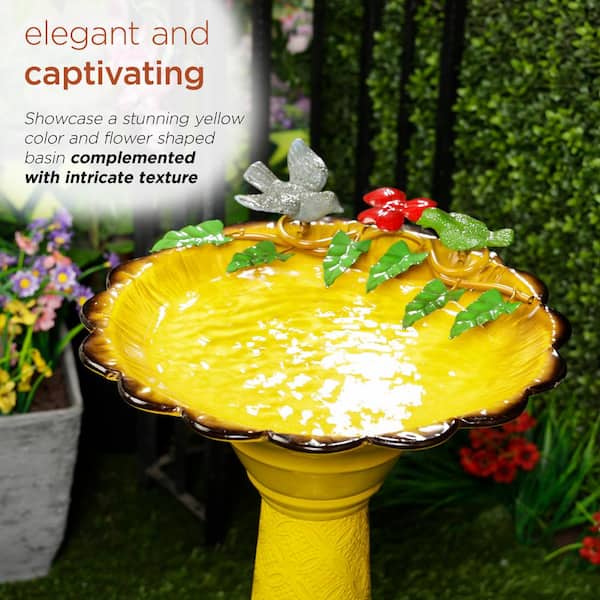 Alpine Corporation ORS112YL Vintage Metal Pedestal Birdbath with Stand Shallow BirdBath Bowl for Outside 28 in. H Yellow