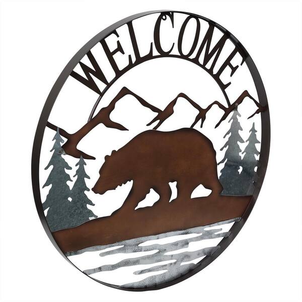 Brown Metal Mountain Bear Scenery Welcome Silhouette Decor