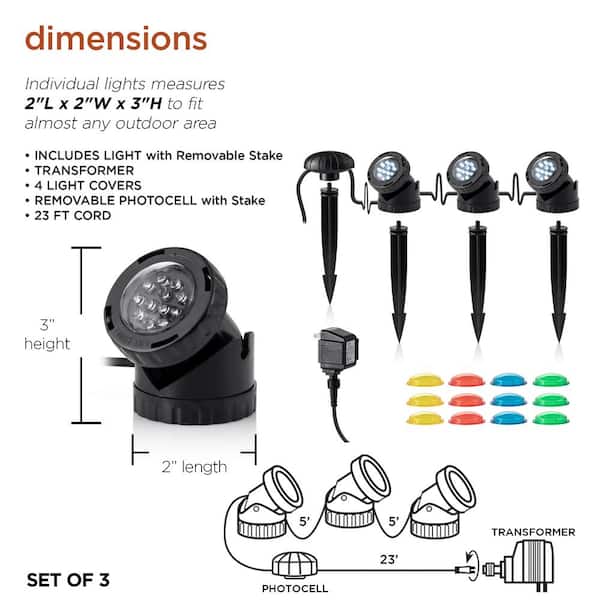 Low Voltage Black Plug-in Outdoor LED Waterproof Multicolor Path Light for Pond Water Features and Garden (Set of 3)