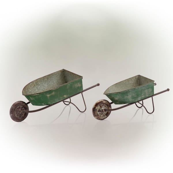 Pack of 2 Indoor/Outdoor Rustic Wheelbarrow Planter Decorations, Green