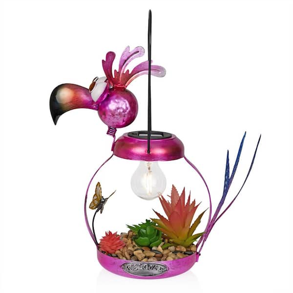 Solar Metal Pink Flamingo with Garden Enclosed LED Decor