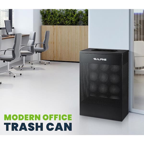13 Gal. Black Perforated Steel Rectangular Stainless Steel Slim Commercial Trash Can with Open Top Lid