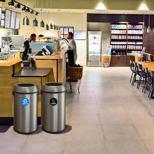17 Gal. Stainless Steel Open Top Recycling Bin and Vented Trash Can (2-Pack)