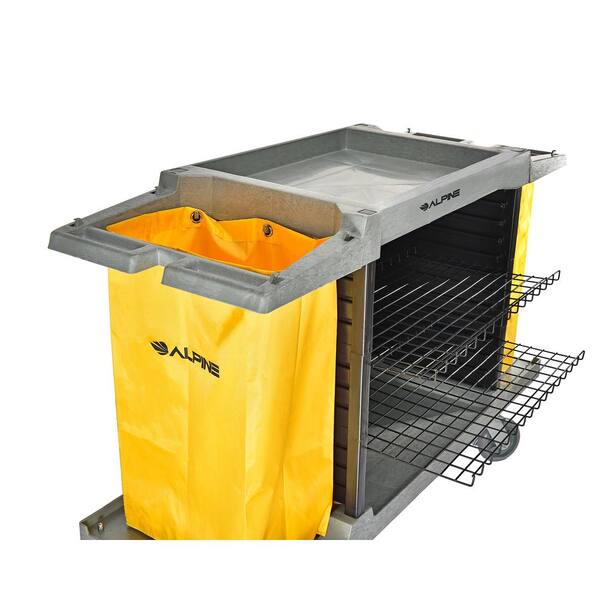 2-Wire Shelf PVC Janitorial Platform Cleaning Cart with 2 Yellow Vinyl Bags