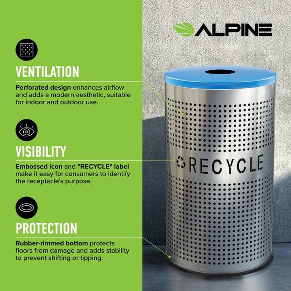 26 gal. Recycling Perforated Stainless Steel Commercial Trash Can with Blue Lid and Liner