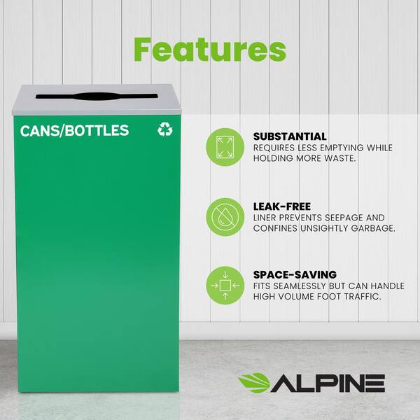 29 Gal. Green Steel Vented Commercial Cans and Bottles Recycling Bin Receptacle with Mixed Slot Lid