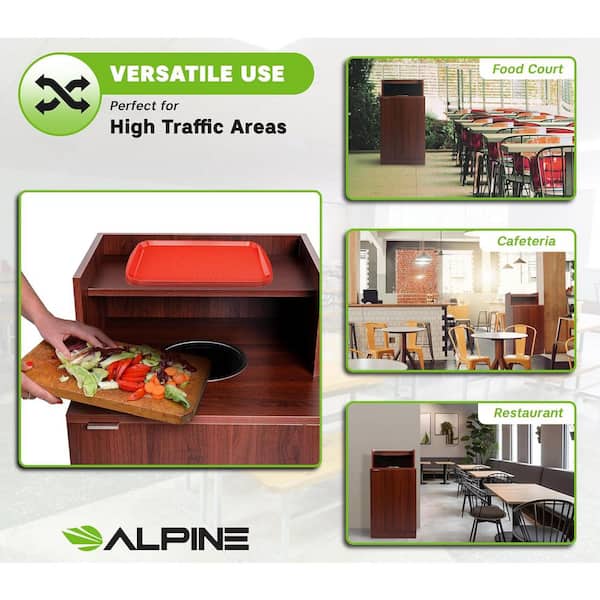 32 Gal. Mahogany Wooden Food Service Tray Top Industrial Waste Bin Drop Hole Indoor Trash Can Enclosure