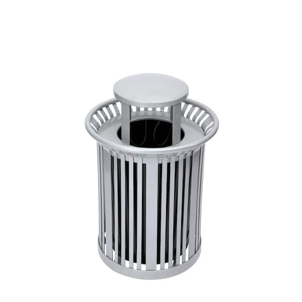 36 Gal. Steel Outdoor Commercial Trash Can with Dome Lid, Silver