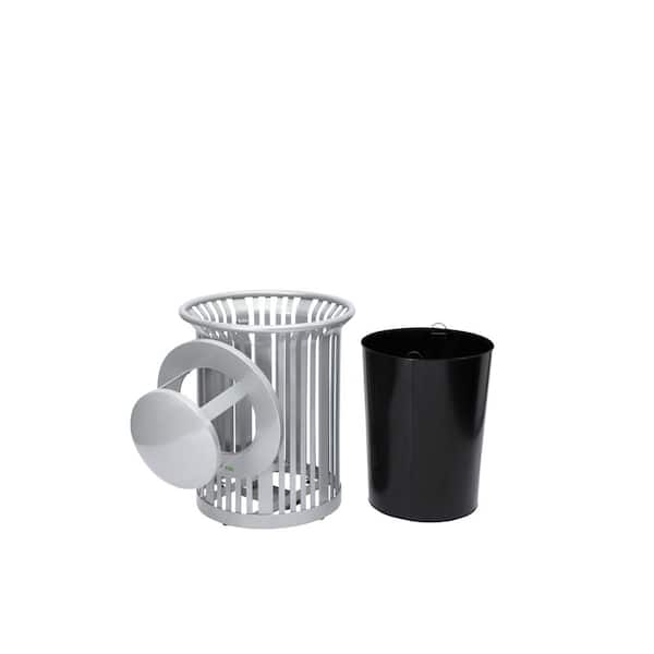 • All-weather steel outdoor trash can with 36 gal. capacity