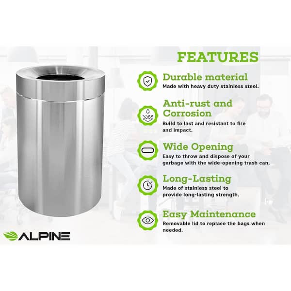 • Touch-free disposal of trash with 50 gal. bin and open top lid