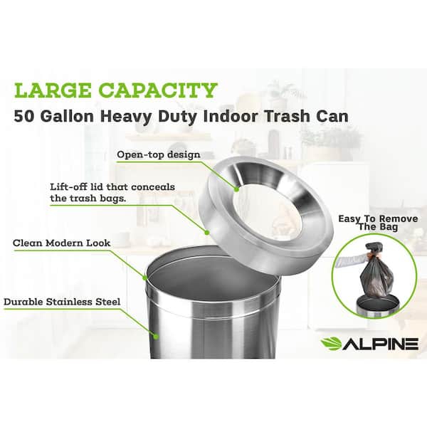 50 Gal. Stainless Steel Round Vented Commercial Garbage Trash Can with Open Top Lid