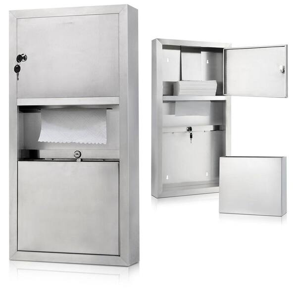 Stainless Steel Surface-Mounted Commercial C-Fold/Multi-Fold Paper Towel Dispenser with 2 Gal. Waste Receptacle (2-Pack)